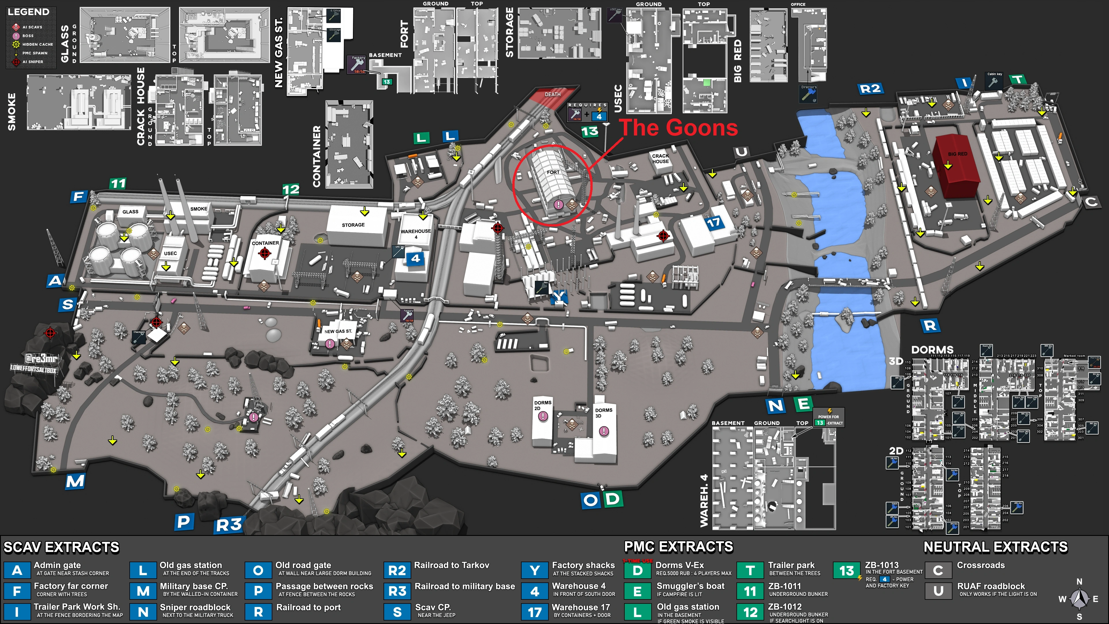 What Map Are The Goons On Tarkov – Unfortunately, that’s not always the case due to optimization concerns on new maps. But hey, knowing is half the battle. Here are the Escape From Tarkov system requirements to help you plan your . Ground Zero’s only transit exit is Streets of Tarkov, which is also located in the most western part of the map at the truck barrier next to the Mira Ave extraction point. It’s only available .